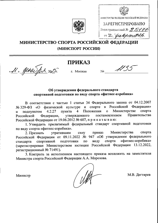 ПРИКАЗ Минспорта РФ от 11.12.2025 N 1135