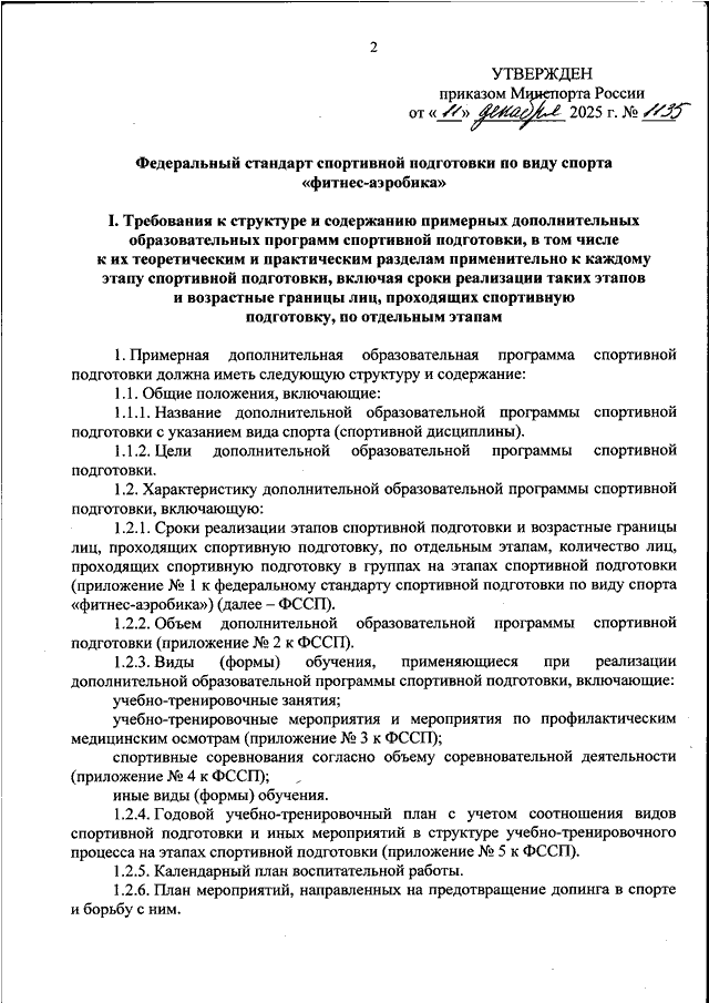 ПРИКАЗ Минспорта РФ от 11.12.2025 N 1135