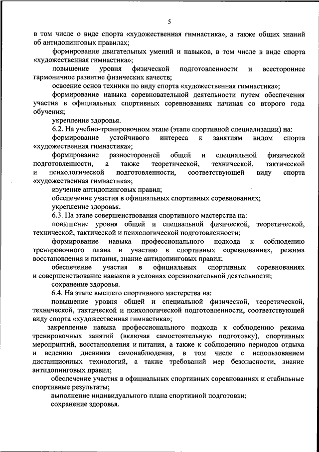 "ОБ УТВЕРЖДЕНИИ ФЕДЕРАЛЬНОГО СТАНДАРТА СПОРТИВНОЙ ПОДГОТОВКИ ПО ВИДУ СПОРТА "ХУДОЖЕСТВЕННАЯ ГИМНАСТИКА"
