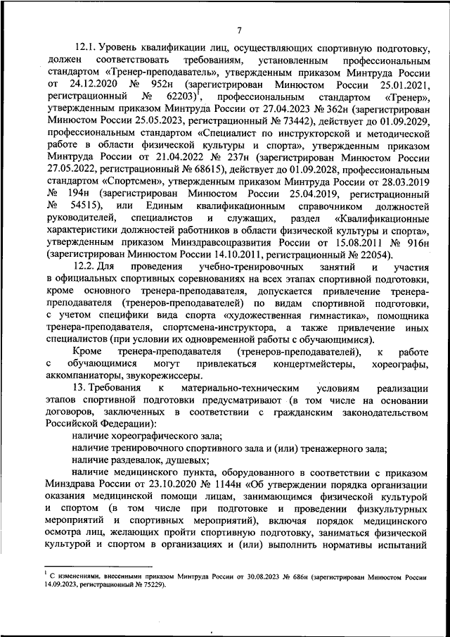 "ОБ УТВЕРЖДЕНИИ ФЕДЕРАЛЬНОГО СТАНДАРТА СПОРТИВНОЙ ПОДГОТОВКИ ПО ВИДУ СПОРТА "ХУДОЖЕСТВЕННАЯ ГИМНАСТИКА"