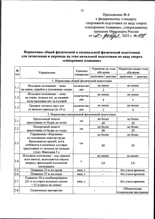 "ОБ УТВЕРЖДЕНИИ ФЕДЕРАЛЬНОГО СТАНДАРТА СПОРТИВНОЙ ПОДГОТОВКИ ПО ВИДУ СПОРТА "СИНХРОННОЕ ПЛАВАНИЕ"