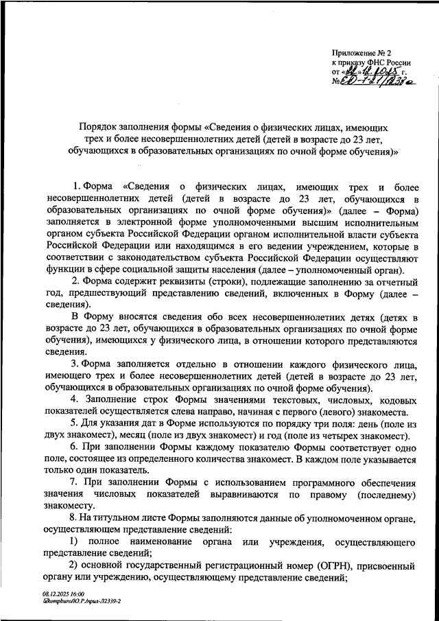 ПРИКАЗ ФНС РФ от 22.12.2025 N ЕД-7-21/1238@