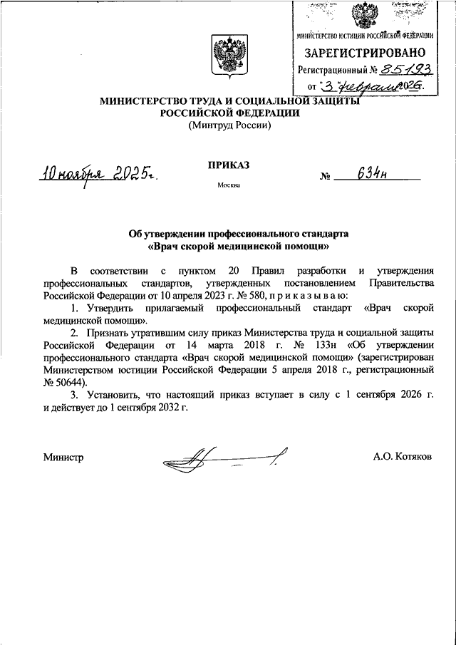 ПРИКАЗ Минтруда РФ от 10.11.2025 N 634н