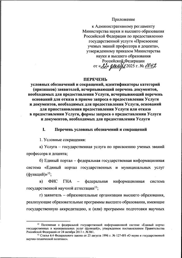 ПРИКАЗ Минобрнауки РФ от 22.12.2025 N 1042