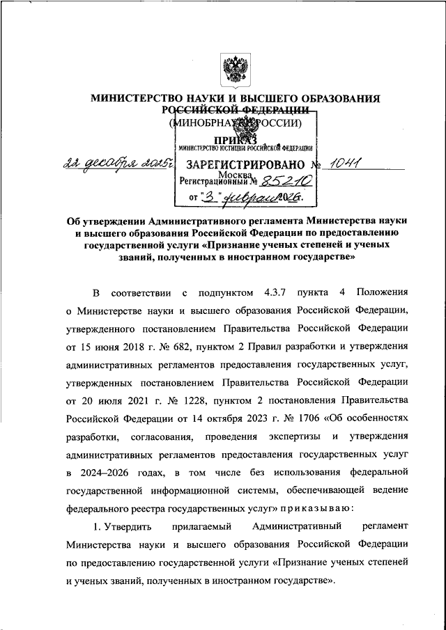 ПРИКАЗ Минобрнауки РФ от 22.12.2025 N 1041