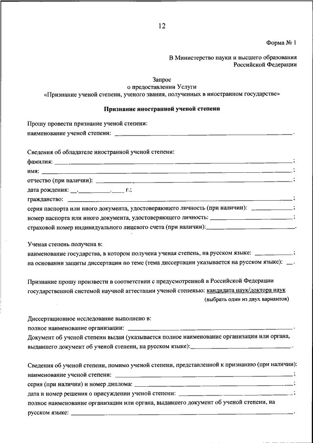 "ОБ УТВЕРЖДЕНИИ АДМИНИСТРАТИВНОГО РЕГЛАМЕНТА МИНИСТЕРСТВА НАУКИ И ВЫСШЕГО ОБРАЗОВАНИЯ РОССИЙСКОЙ ФЕДЕРАЦИИ ПО ПРЕДОСТАВЛЕНИЮ ГОСУДАРСТВЕННОЙ УСЛУГИ "ПРИЗНАНИЕ УЧЕНЫХ СТЕПЕНЕЙ И УЧЕНЫХ ЗВАНИЙ, ПОЛУЧЕННЫХ В ИНОСТРАННОМ ГОСУДАРСТВЕ"