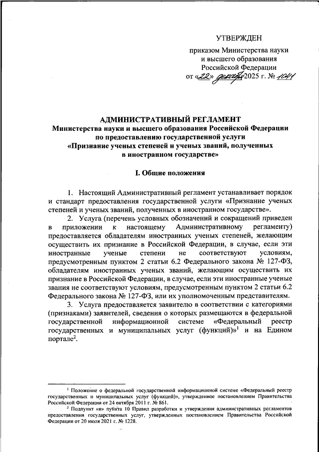 ПРИКАЗ Минобрнауки РФ от 22.12.2025 N 1041