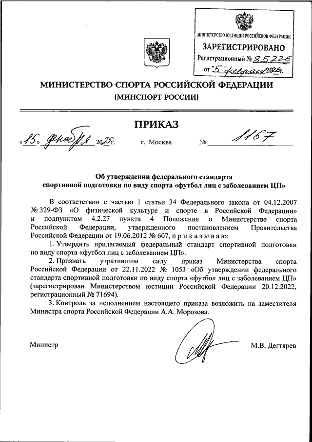 ПРИКАЗ Минспорта РФ от 15.12.2025 N 1167