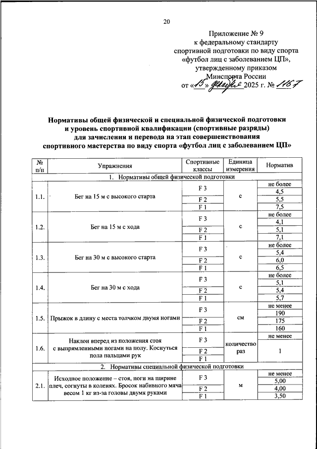 "ОБ УТВЕРЖДЕНИИ ФЕДЕРАЛЬНОГО СТАНДАРТА СПОРТИВНОЙ ПОДГОТОВКИ ПО ВИДУ СПОРТА "ФУТБОЛ ЛИЦ С ЗАБОЛЕВАНИЕМ ЦП"