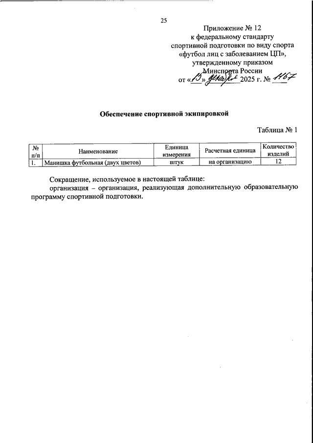 ПРИКАЗ Минспорта РФ от 15.12.2025 N 1167