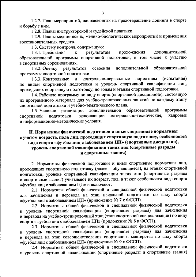 "ОБ УТВЕРЖДЕНИИ ФЕДЕРАЛЬНОГО СТАНДАРТА СПОРТИВНОЙ ПОДГОТОВКИ ПО ВИДУ СПОРТА "ФУТБОЛ ЛИЦ С ЗАБОЛЕВАНИЕМ ЦП"