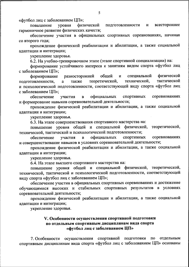 "ОБ УТВЕРЖДЕНИИ ФЕДЕРАЛЬНОГО СТАНДАРТА СПОРТИВНОЙ ПОДГОТОВКИ ПО ВИДУ СПОРТА "ФУТБОЛ ЛИЦ С ЗАБОЛЕВАНИЕМ ЦП"
