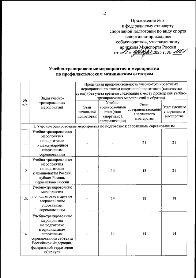 ПРИКАЗ Минспорта РФ от 15.12.2025 N 1161