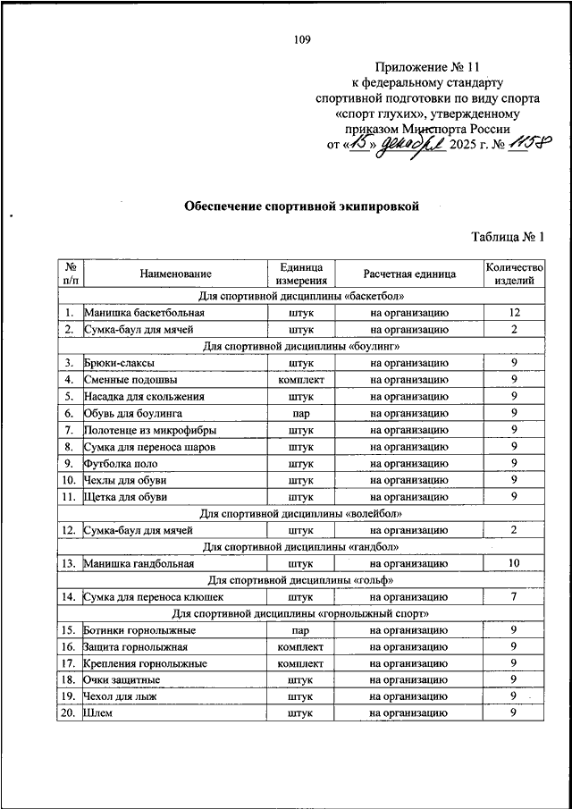 ПРИКАЗ Минспорта РФ от 15.12.2025 N 1158