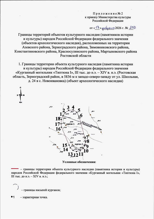 "О ВКЛЮЧЕНИИ ВЫЯВЛЕННЫХ ОБЪЕКТОВ КУЛЬТУРНОГО НАСЛЕДИЯ (ПАМЯТНИКОВ ИСТОРИИ И КУЛЬТУРЫ) НАРОДОВ РОССИЙСКОЙ ФЕДЕРАЦИИ (ОБЪЕКТОВ АРХЕОЛОГИЧЕСКОГО НАСЛЕДИЯ), РАСПОЛОЖЕННЫХ НА ТЕРРИТОРИИ АЗОВСКОГО РАЙОНА, ЗЕРНОГРАДСКОГО РАЙОНА, ЗИМОВНИКОВСКОГО РАЙОНА, КОНСТАНТИНОВСКОГО РАЙОНА, КРАСНОСУЛИНСКОГО РАЙОНА, МАРТЫНОВСКОГО РАЙОНА РОСТОВСКОЙ ОБЛАСТИ, В ЕДИНЫЙ ГОСУДАРСТВЕННЫЙ РЕЕСТР ОБЪЕКТОВ КУЛЬТУРНОГО НАСЛЕДИЯ (ПАМЯТНИКОВ ИСТОРИИ И КУЛЬТУРЫ) НАРОДОВ РОССИЙСКОЙ ФЕДЕРАЦИИ В КАЧЕСТВЕ ОБЪЕКТОВ КУЛЬТУРНОГО НАСЛЕДИЯ (ПАМЯТНИКОВ ИСТОРИИ И КУЛЬТУРЫ) НАРОДОВ РОССИЙСКОЙ ФЕДЕРАЦИИ ФЕДЕРАЛЬНОГО ЗНАЧЕНИЯ И УТВЕРЖДЕНИИ ГРАНИЦ ИХ ТЕРРИТОРИЙ"