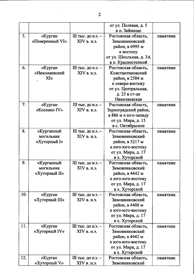 "О ВКЛЮЧЕНИИ ВЫЯВЛЕННЫХ ОБЪЕКТОВ КУЛЬТУРНОГО НАСЛЕДИЯ (ПАМЯТНИКОВ ИСТОРИИ И КУЛЬТУРЫ) НАРОДОВ РОССИЙСКОЙ ФЕДЕРАЦИИ (ОБЪЕКТОВ АРХЕОЛОГИЧЕСКОГО НАСЛЕДИЯ), РАСПОЛОЖЕННЫХ НА ТЕРРИТОРИИ АЗОВСКОГО РАЙОНА, ЗЕРНОГРАДСКОГО РАЙОНА, ЗИМОВНИКОВСКОГО РАЙОНА, КОНСТАНТИНОВСКОГО РАЙОНА, КРАСНОСУЛИНСКОГО РАЙОНА, МАРТЫНОВСКОГО РАЙОНА РОСТОВСКОЙ ОБЛАСТИ, В ЕДИНЫЙ ГОСУДАРСТВЕННЫЙ РЕЕСТР ОБЪЕКТОВ КУЛЬТУРНОГО НАСЛЕДИЯ (ПАМЯТНИКОВ ИСТОРИИ И КУЛЬТУРЫ) НАРОДОВ РОССИЙСКОЙ ФЕДЕРАЦИИ В КАЧЕСТВЕ ОБЪЕКТОВ КУЛЬТУРНОГО НАСЛЕДИЯ (ПАМЯТНИКОВ ИСТОРИИ И КУЛЬТУРЫ) НАРОДОВ РОССИЙСКОЙ ФЕДЕРАЦИИ ФЕДЕРАЛЬНОГО ЗНАЧЕНИЯ И УТВЕРЖДЕНИИ ГРАНИЦ ИХ ТЕРРИТОРИЙ"