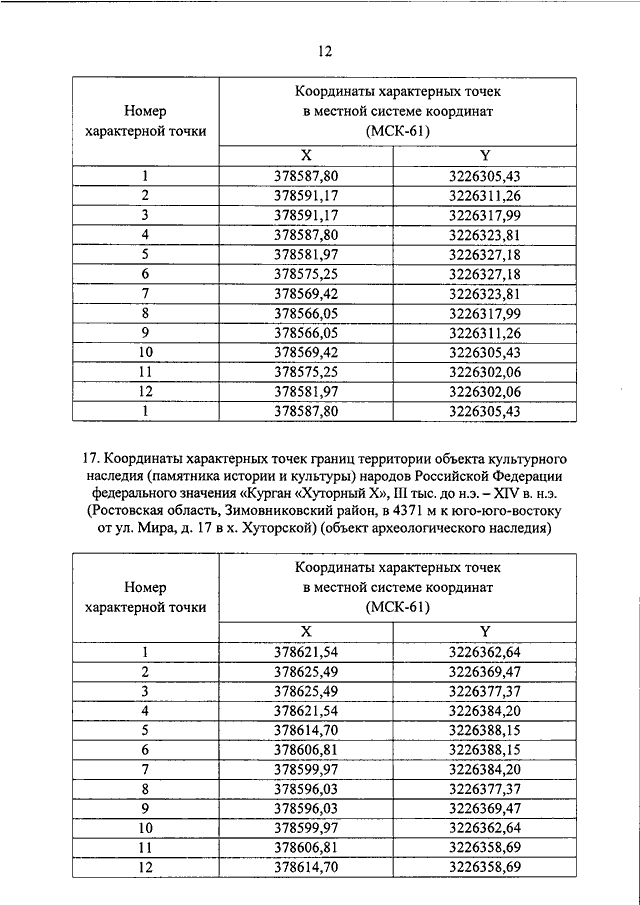 "О ВКЛЮЧЕНИИ ВЫЯВЛЕННЫХ ОБЪЕКТОВ КУЛЬТУРНОГО НАСЛЕДИЯ (ПАМЯТНИКОВ ИСТОРИИ И КУЛЬТУРЫ) НАРОДОВ РОССИЙСКОЙ ФЕДЕРАЦИИ (ОБЪЕКТОВ АРХЕОЛОГИЧЕСКОГО НАСЛЕДИЯ), РАСПОЛОЖЕННЫХ НА ТЕРРИТОРИИ АЗОВСКОГО РАЙОНА, ЗЕРНОГРАДСКОГО РАЙОНА, ЗИМОВНИКОВСКОГО РАЙОНА, КОНСТАНТИНОВСКОГО РАЙОНА, КРАСНОСУЛИНСКОГО РАЙОНА, МАРТЫНОВСКОГО РАЙОНА РОСТОВСКОЙ ОБЛАСТИ, В ЕДИНЫЙ ГОСУДАРСТВЕННЫЙ РЕЕСТР ОБЪЕКТОВ КУЛЬТУРНОГО НАСЛЕДИЯ (ПАМЯТНИКОВ ИСТОРИИ И КУЛЬТУРЫ) НАРОДОВ РОССИЙСКОЙ ФЕДЕРАЦИИ В КАЧЕСТВЕ ОБЪЕКТОВ КУЛЬТУРНОГО НАСЛЕДИЯ (ПАМЯТНИКОВ ИСТОРИИ И КУЛЬТУРЫ) НАРОДОВ РОССИЙСКОЙ ФЕДЕРАЦИИ ФЕДЕРАЛЬНОГО ЗНАЧЕНИЯ И УТВЕРЖДЕНИИ ГРАНИЦ ИХ ТЕРРИТОРИЙ"