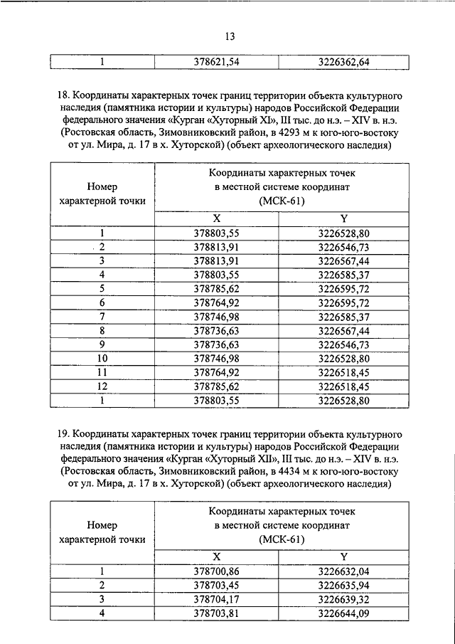 "О ВКЛЮЧЕНИИ ВЫЯВЛЕННЫХ ОБЪЕКТОВ КУЛЬТУРНОГО НАСЛЕДИЯ (ПАМЯТНИКОВ ИСТОРИИ И КУЛЬТУРЫ) НАРОДОВ РОССИЙСКОЙ ФЕДЕРАЦИИ (ОБЪЕКТОВ АРХЕОЛОГИЧЕСКОГО НАСЛЕДИЯ), РАСПОЛОЖЕННЫХ НА ТЕРРИТОРИИ АЗОВСКОГО РАЙОНА, ЗЕРНОГРАДСКОГО РАЙОНА, ЗИМОВНИКОВСКОГО РАЙОНА, КОНСТАНТИНОВСКОГО РАЙОНА, КРАСНОСУЛИНСКОГО РАЙОНА, МАРТЫНОВСКОГО РАЙОНА РОСТОВСКОЙ ОБЛАСТИ, В ЕДИНЫЙ ГОСУДАРСТВЕННЫЙ РЕЕСТР ОБЪЕКТОВ КУЛЬТУРНОГО НАСЛЕДИЯ (ПАМЯТНИКОВ ИСТОРИИ И КУЛЬТУРЫ) НАРОДОВ РОССИЙСКОЙ ФЕДЕРАЦИИ В КАЧЕСТВЕ ОБЪЕКТОВ КУЛЬТУРНОГО НАСЛЕДИЯ (ПАМЯТНИКОВ ИСТОРИИ И КУЛЬТУРЫ) НАРОДОВ РОССИЙСКОЙ ФЕДЕРАЦИИ ФЕДЕРАЛЬНОГО ЗНАЧЕНИЯ И УТВЕРЖДЕНИИ ГРАНИЦ ИХ ТЕРРИТОРИЙ"