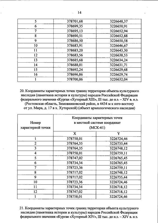 "О ВКЛЮЧЕНИИ ВЫЯВЛЕННЫХ ОБЪЕКТОВ КУЛЬТУРНОГО НАСЛЕДИЯ (ПАМЯТНИКОВ ИСТОРИИ И КУЛЬТУРЫ) НАРОДОВ РОССИЙСКОЙ ФЕДЕРАЦИИ (ОБЪЕКТОВ АРХЕОЛОГИЧЕСКОГО НАСЛЕДИЯ), РАСПОЛОЖЕННЫХ НА ТЕРРИТОРИИ АЗОВСКОГО РАЙОНА, ЗЕРНОГРАДСКОГО РАЙОНА, ЗИМОВНИКОВСКОГО РАЙОНА, КОНСТАНТИНОВСКОГО РАЙОНА, КРАСНОСУЛИНСКОГО РАЙОНА, МАРТЫНОВСКОГО РАЙОНА РОСТОВСКОЙ ОБЛАСТИ, В ЕДИНЫЙ ГОСУДАРСТВЕННЫЙ РЕЕСТР ОБЪЕКТОВ КУЛЬТУРНОГО НАСЛЕДИЯ (ПАМЯТНИКОВ ИСТОРИИ И КУЛЬТУРЫ) НАРОДОВ РОССИЙСКОЙ ФЕДЕРАЦИИ В КАЧЕСТВЕ ОБЪЕКТОВ КУЛЬТУРНОГО НАСЛЕДИЯ (ПАМЯТНИКОВ ИСТОРИИ И КУЛЬТУРЫ) НАРОДОВ РОССИЙСКОЙ ФЕДЕРАЦИИ ФЕДЕРАЛЬНОГО ЗНАЧЕНИЯ И УТВЕРЖДЕНИИ ГРАНИЦ ИХ ТЕРРИТОРИЙ"
