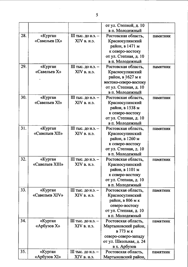 "О ВКЛЮЧЕНИИ ВЫЯВЛЕННЫХ ОБЪЕКТОВ КУЛЬТУРНОГО НАСЛЕДИЯ (ПАМЯТНИКОВ ИСТОРИИ И КУЛЬТУРЫ) НАРОДОВ РОССИЙСКОЙ ФЕДЕРАЦИИ (ОБЪЕКТОВ АРХЕОЛОГИЧЕСКОГО НАСЛЕДИЯ), РАСПОЛОЖЕННЫХ НА ТЕРРИТОРИИ АЗОВСКОГО РАЙОНА, ЗЕРНОГРАДСКОГО РАЙОНА, ЗИМОВНИКОВСКОГО РАЙОНА, КОНСТАНТИНОВСКОГО РАЙОНА, КРАСНОСУЛИНСКОГО РАЙОНА, МАРТЫНОВСКОГО РАЙОНА РОСТОВСКОЙ ОБЛАСТИ, В ЕДИНЫЙ ГОСУДАРСТВЕННЫЙ РЕЕСТР ОБЪЕКТОВ КУЛЬТУРНОГО НАСЛЕДИЯ (ПАМЯТНИКОВ ИСТОРИИ И КУЛЬТУРЫ) НАРОДОВ РОССИЙСКОЙ ФЕДЕРАЦИИ В КАЧЕСТВЕ ОБЪЕКТОВ КУЛЬТУРНОГО НАСЛЕДИЯ (ПАМЯТНИКОВ ИСТОРИИ И КУЛЬТУРЫ) НАРОДОВ РОССИЙСКОЙ ФЕДЕРАЦИИ ФЕДЕРАЛЬНОГО ЗНАЧЕНИЯ И УТВЕРЖДЕНИИ ГРАНИЦ ИХ ТЕРРИТОРИЙ"