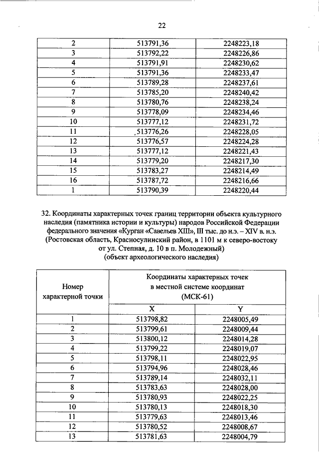 "О ВКЛЮЧЕНИИ ВЫЯВЛЕННЫХ ОБЪЕКТОВ КУЛЬТУРНОГО НАСЛЕДИЯ (ПАМЯТНИКОВ ИСТОРИИ И КУЛЬТУРЫ) НАРОДОВ РОССИЙСКОЙ ФЕДЕРАЦИИ (ОБЪЕКТОВ АРХЕОЛОГИЧЕСКОГО НАСЛЕДИЯ), РАСПОЛОЖЕННЫХ НА ТЕРРИТОРИИ АЗОВСКОГО РАЙОНА, ЗЕРНОГРАДСКОГО РАЙОНА, ЗИМОВНИКОВСКОГО РАЙОНА, КОНСТАНТИНОВСКОГО РАЙОНА, КРАСНОСУЛИНСКОГО РАЙОНА, МАРТЫНОВСКОГО РАЙОНА РОСТОВСКОЙ ОБЛАСТИ, В ЕДИНЫЙ ГОСУДАРСТВЕННЫЙ РЕЕСТР ОБЪЕКТОВ КУЛЬТУРНОГО НАСЛЕДИЯ (ПАМЯТНИКОВ ИСТОРИИ И КУЛЬТУРЫ) НАРОДОВ РОССИЙСКОЙ ФЕДЕРАЦИИ В КАЧЕСТВЕ ОБЪЕКТОВ КУЛЬТУРНОГО НАСЛЕДИЯ (ПАМЯТНИКОВ ИСТОРИИ И КУЛЬТУРЫ) НАРОДОВ РОССИЙСКОЙ ФЕДЕРАЦИИ ФЕДЕРАЛЬНОГО ЗНАЧЕНИЯ И УТВЕРЖДЕНИИ ГРАНИЦ ИХ ТЕРРИТОРИЙ"