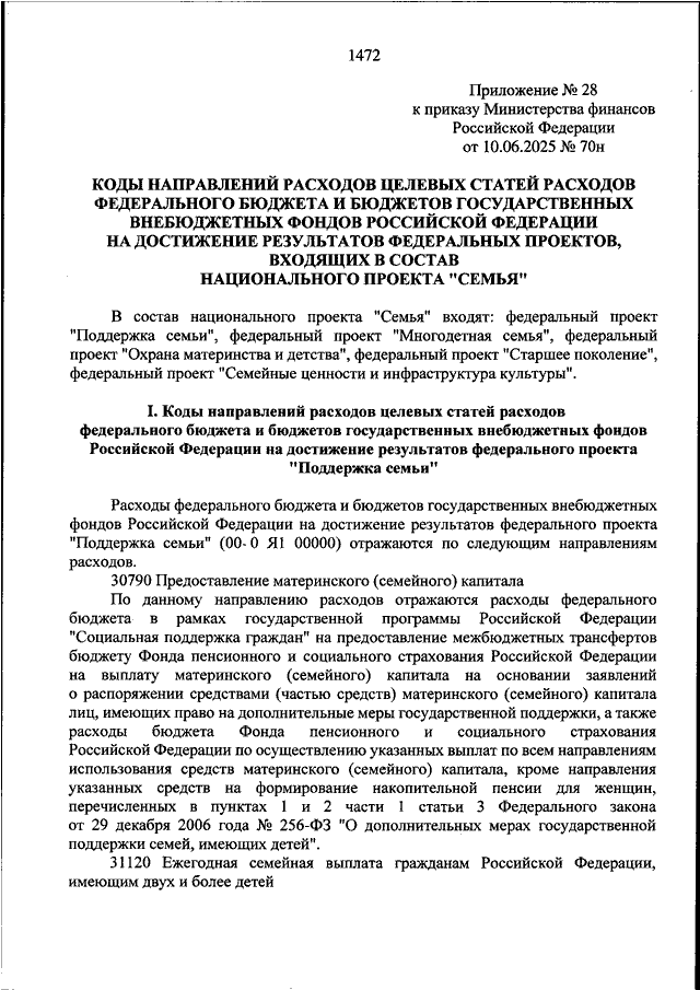 "О ВНЕСЕНИИ ИЗМЕНЕНИЙ В ПРИКАЗ МИНИСТЕРСТВА ФИНАНСОВ РОССИЙСКОЙ ФЕДЕРАЦИИ ОТ 10 ИЮНЯ 2025 Г. N 70Н "ОБ УТВЕРЖДЕНИИ КОДОВ (ПЕРЕЧНЕЙ КОДОВ) БЮДЖЕТНОЙ КЛАССИФИКАЦИИ РОССИЙСКОЙ ФЕДЕРАЦИИ НА 2026 ГОД (НА 2026 ГОД И НА ПЛАНОВЫЙ ПЕРИОД 2027 И 2028 ГОДОВ)"