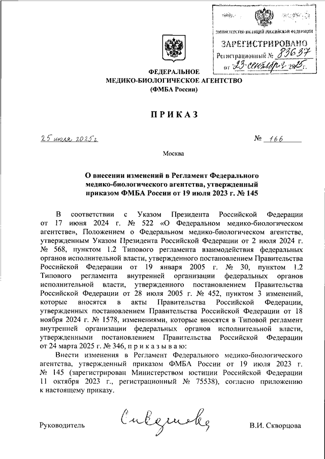 ПРИКАЗ ФМБА РФ от 25.07.2025 N 166