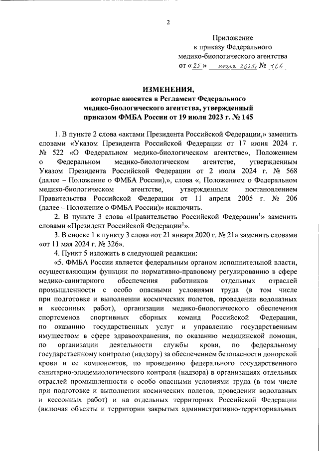 ПРИКАЗ ФМБА РФ от 25.07.2025 N 166