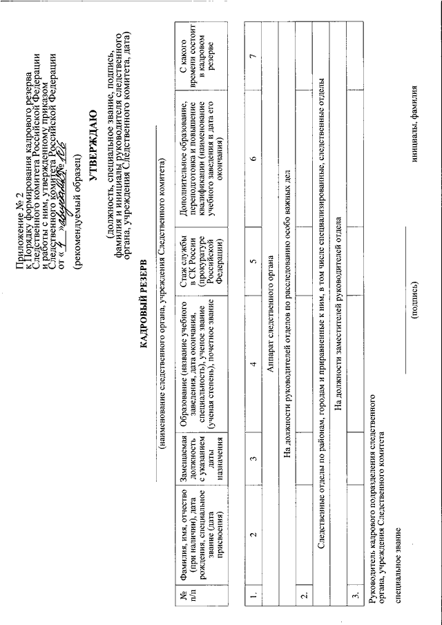 "ОБ УТВЕРЖДЕНИИ ПОРЯДКА ФОРМИРОВАНИЯ КАДРОВОГО РЕЗЕРВА СЛЕДСТВЕННОГО КОМИТЕТА РОССИЙСКОЙ ФЕДЕРАЦИИ И РАБОТЫ С НИМ"