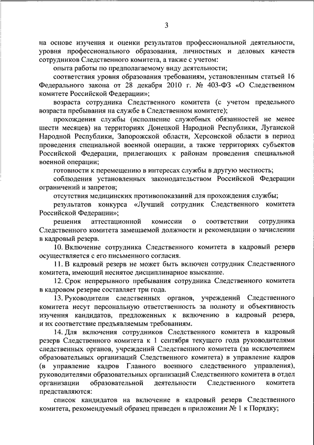 "ОБ УТВЕРЖДЕНИИ ПОРЯДКА ФОРМИРОВАНИЯ КАДРОВОГО РЕЗЕРВА СЛЕДСТВЕННОГО КОМИТЕТА РОССИЙСКОЙ ФЕДЕРАЦИИ И РАБОТЫ С НИМ"