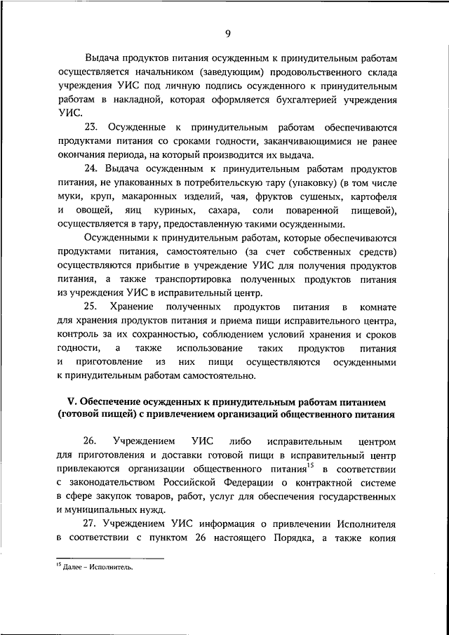 "ОБ УТВЕРЖДЕНИИ ПОРЯДКА ОБЕСПЕЧЕНИЯ ОСУЖДЕННЫХ К ПРИНУДИТЕЛЬНЫМ РАБОТАМ ПРОДУКТАМИ ПИТАНИЯ ИЛИ ПИТАНИЕМ"