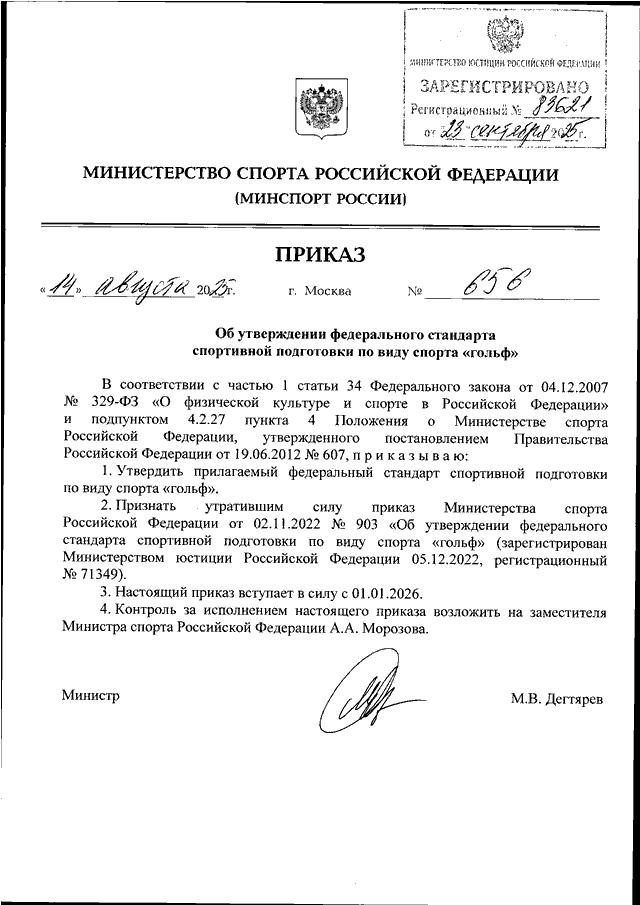 ПРИКАЗ Минспорта РФ от 14.08.2025 N 656
