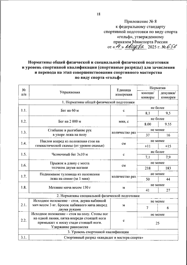 ПРИКАЗ Минспорта РФ от 14.08.2025 N 656