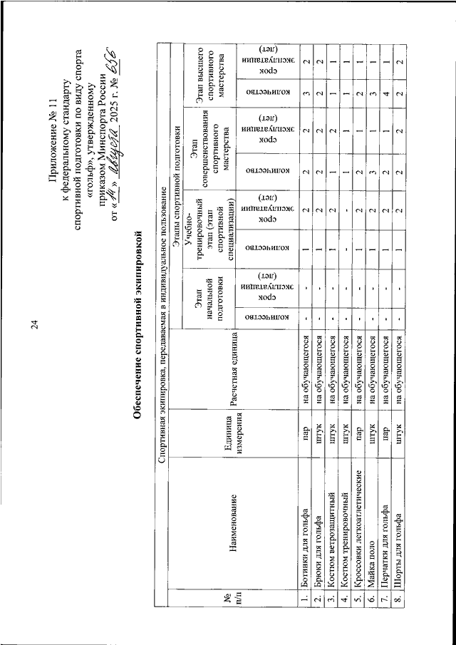 "ОБ УТВЕРЖДЕНИИ ФЕДЕРАЛЬНОГО СТАНДАРТА СПОРТИВНОЙ ПОДГОТОВКИ ПО ВИДУ СПОРТА "ГОЛЬФ"