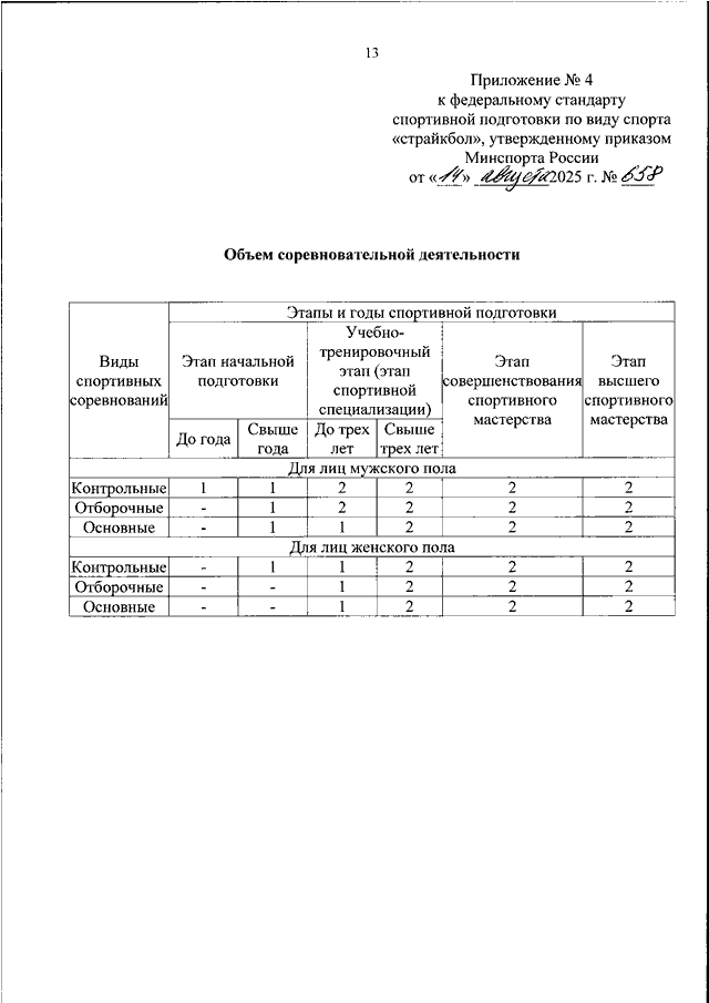 ПРИКАЗ Минспорта РФ от 14.08.2025 N 658