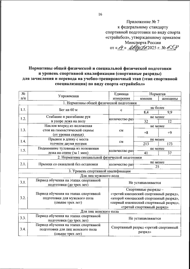 ПРИКАЗ Минспорта РФ от 14.08.2025 N 658