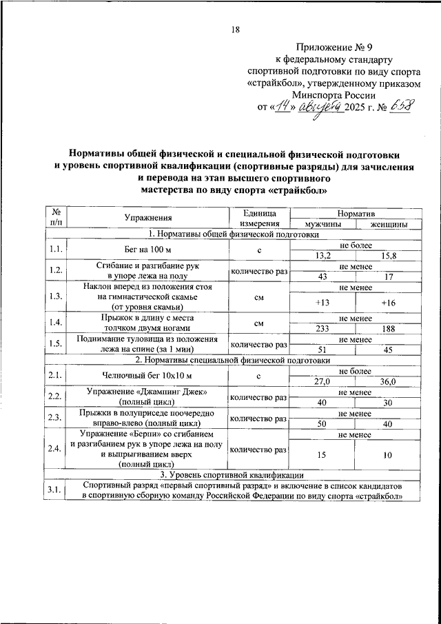 ПРИКАЗ Минспорта РФ от 14.08.2025 N 658