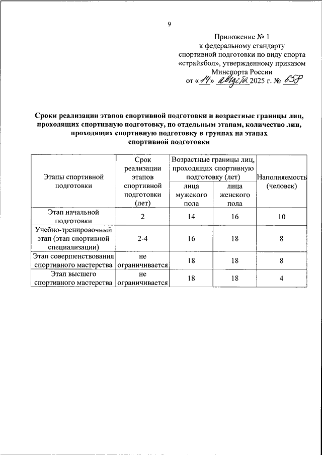 ПРИКАЗ Минспорта РФ от 14.08.2025 N 658