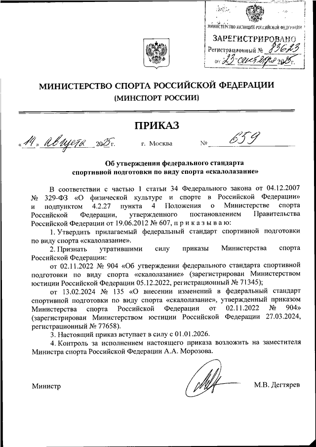 ПРИКАЗ Минспорта РФ от 14.08.2025 N 659