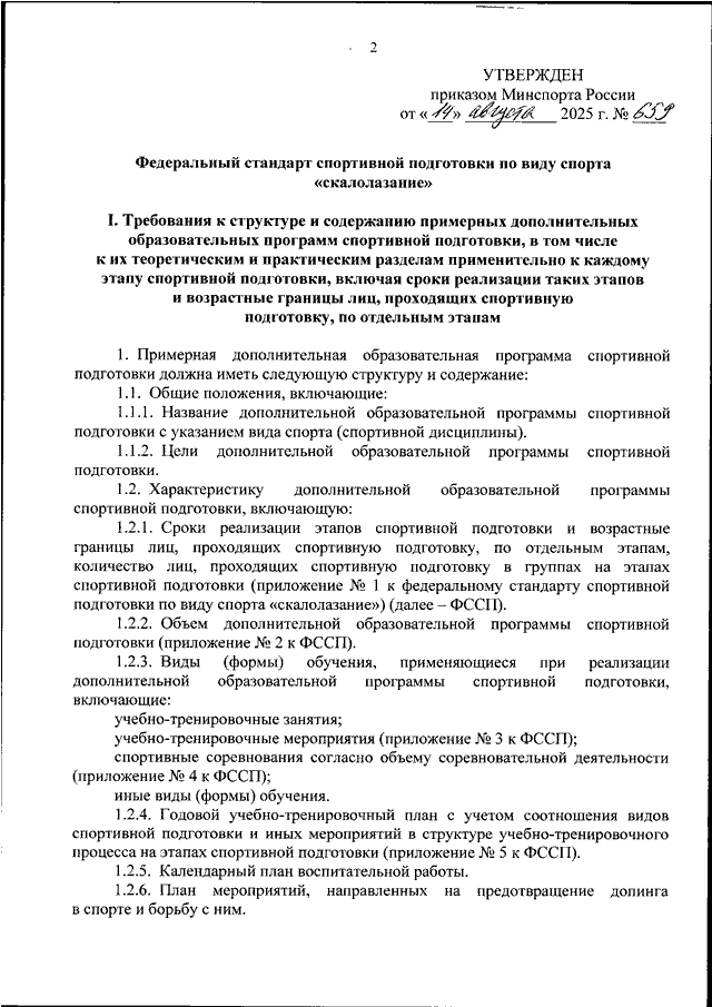ПРИКАЗ Минспорта РФ от 14.08.2025 N 659