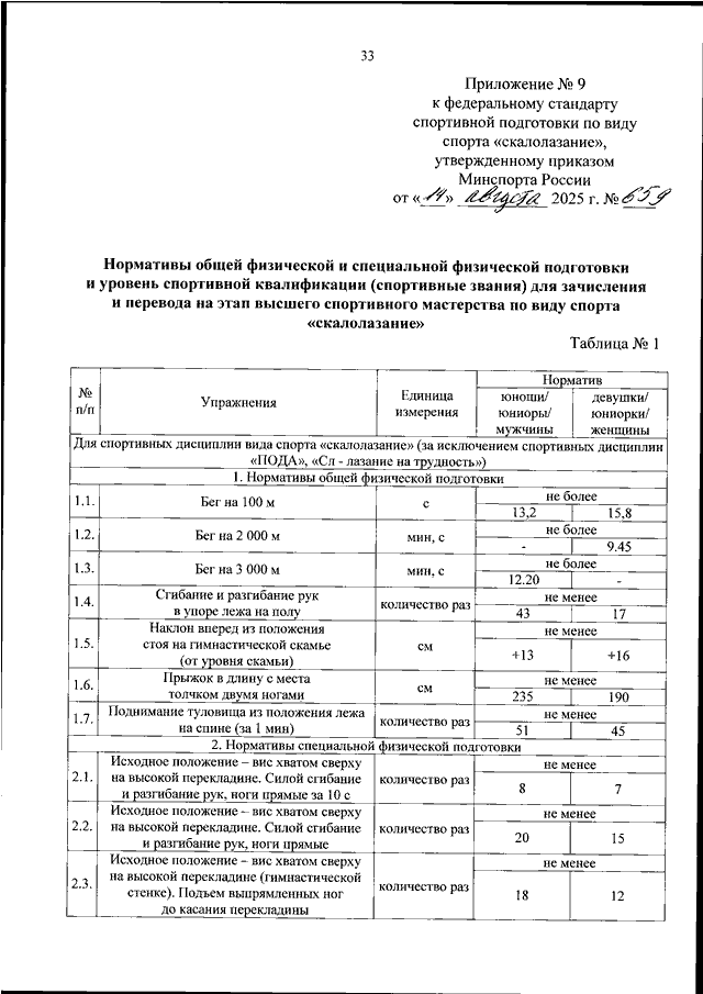 ПРИКАЗ Минспорта РФ от 14.08.2025 N 659
