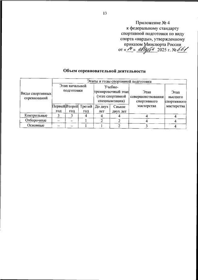 ПРИКАЗ Минспорта РФ от 14.08.2025 N 661