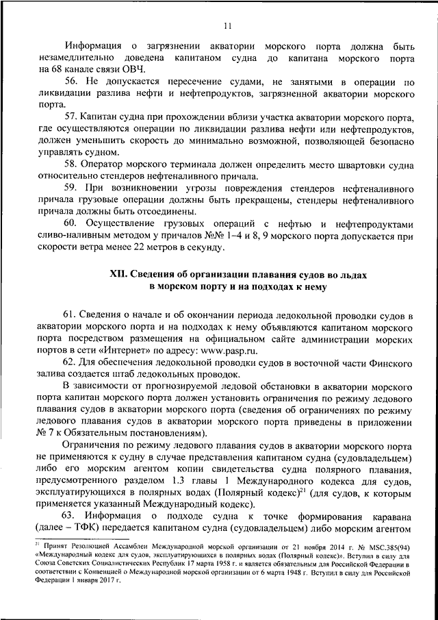 "ОБ УТВЕРЖДЕНИИ ОБЯЗАТЕЛЬНЫХ ПОСТАНОВЛЕНИЙ В МОРСКОМ ПОРТУ ПРИМОРСК"
