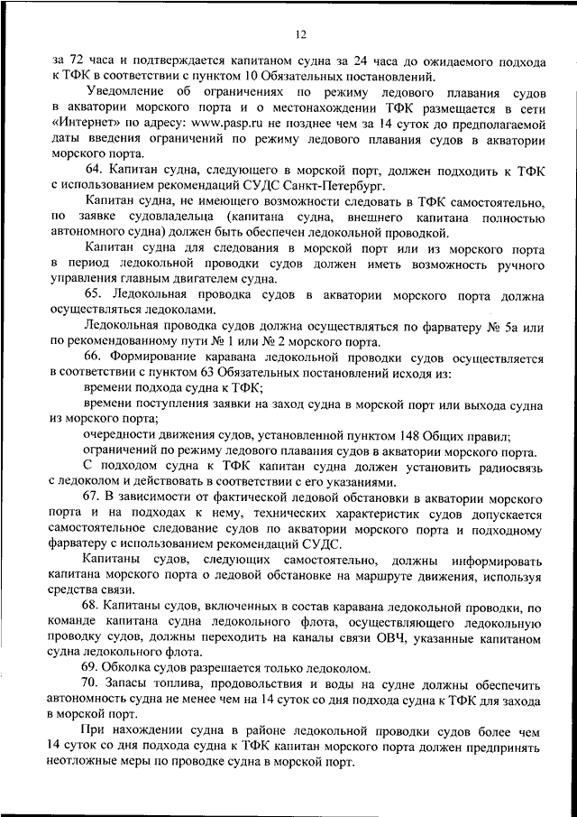 "ОБ УТВЕРЖДЕНИИ ОБЯЗАТЕЛЬНЫХ ПОСТАНОВЛЕНИЙ В МОРСКОМ ПОРТУ ПРИМОРСК"