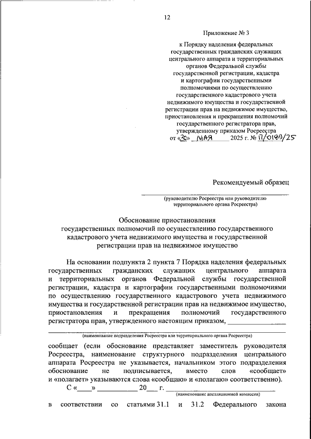 ПРИКАЗ Росреестра от 30.05.2025 N П/0189/25