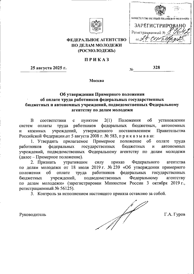 ПРИКАЗ Росмолодежи от 25.08.2025 N 328