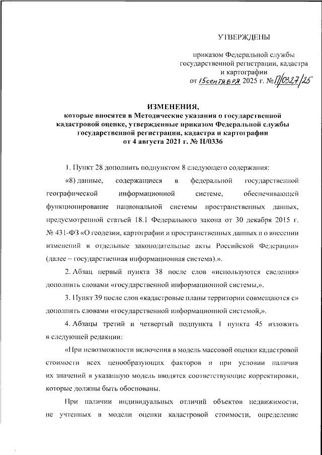 "О ВНЕСЕНИИ ИЗМЕНЕНИЙ В МЕТОДИЧЕСКИЕ УКАЗАНИЯ О ГОСУДАРСТВЕННОЙ КАДАСТРОВОЙ ОЦЕНКЕ, УТВЕРЖДЕННЫЕ ПРИКАЗОМ ФЕДЕРАЛЬНОЙ СЛУЖБЫ ГОСУДАРСТВЕННОЙ РЕГИСТРАЦИИ, КАДАСТРА И КАРТОГРАФИИ ОТ 4 АВГУСТА 2021 Г. N П/0336"