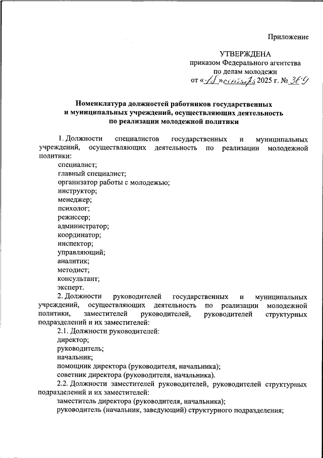 ПРИКАЗ Росмолодежи от 18.09.2025 N 369