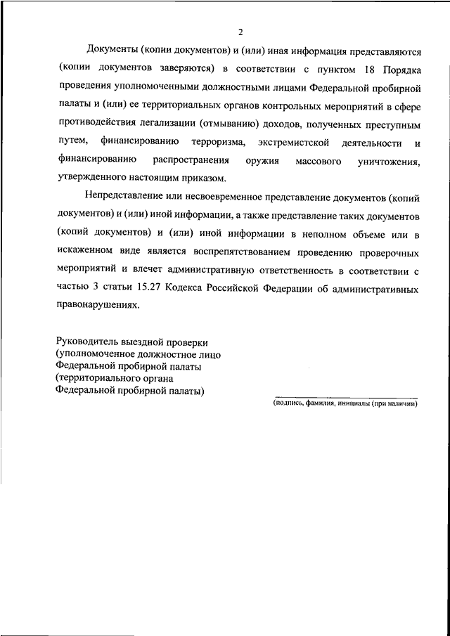 "ОБ УТВЕРЖДЕНИИ ПОРЯДКА ПРОВЕДЕНИЯ УПОЛНОМОЧЕННЫМИ ДОЛЖНОСТНЫМИ ЛИЦАМИ ФЕДЕРАЛЬНОЙ ПРОБИРНОЙ ПАЛАТЫ И (ИЛИ) ЕЕ ТЕРРИТОРИАЛЬНЫХ ОРГАНОВ КОНТРОЛЬНЫХ МЕРОПРИЯТИЙ В СФЕРЕ ПРОТИВОДЕЙСТВИЯ ЛЕГАЛИЗАЦИИ (ОТМЫВАНИЮ) ДОХОДОВ, ПОЛУЧЕННЫХ ПРЕСТУПНЫМ ПУТЕМ, ФИНАНСИРОВАНИЮ ТЕРРОРИЗМА, ЭКСТРЕМИСТСКОЙ ДЕЯТЕЛЬНОСТИ И ФИНАНСИРОВАНИЮ РАСПРОСТРАНЕНИЯ ОРУЖИЯ МАССОВОГО УНИЧТОЖЕНИЯ"
