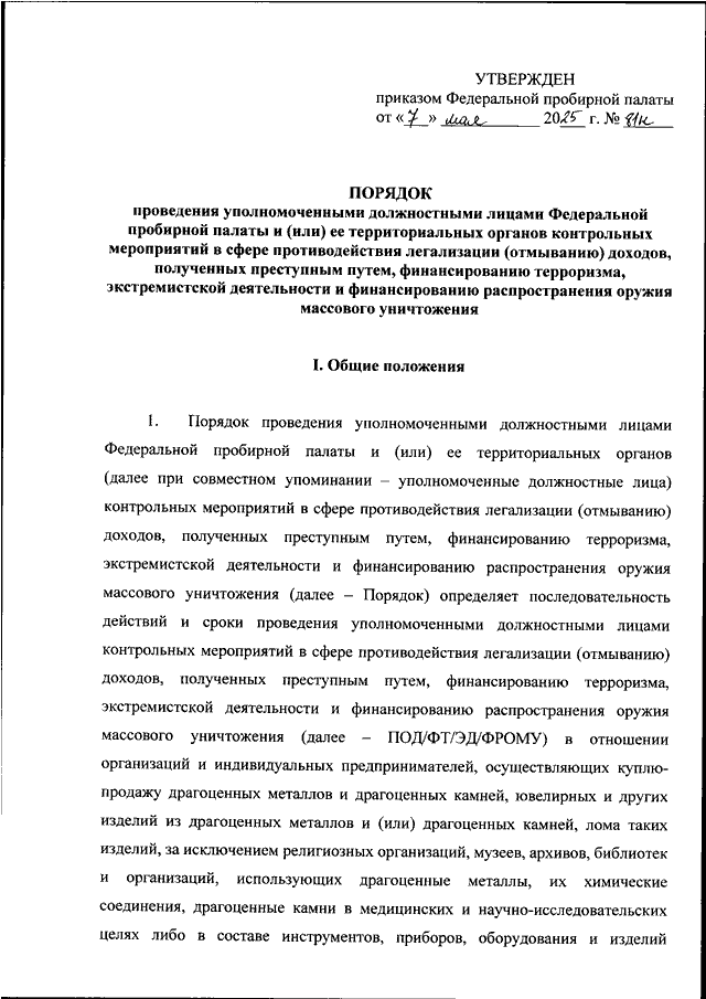 ПРИКАЗ Федеральной пробирной палаты от 07.05.2025 N 81н